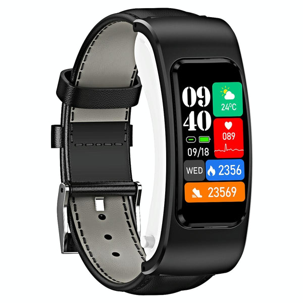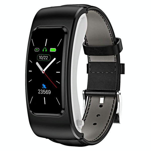 K60 1.08 inch Leather Band Earphone Detachable Life Waterproof Smart Watch Support Bluetooth Call(Black)