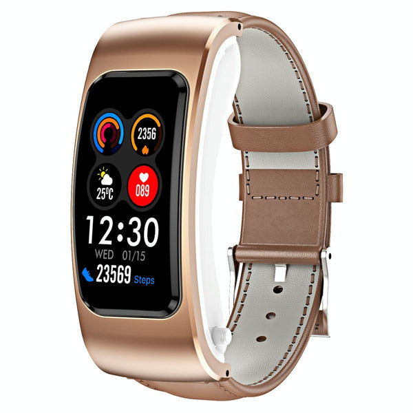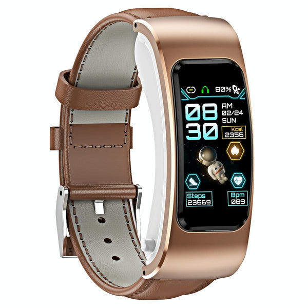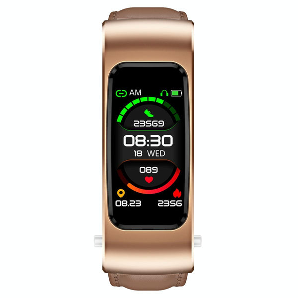 K60 1.08 inch Leather Band Earphone Detachable Life Waterproof Smart Watch Support Bluetooth Call(Brown)