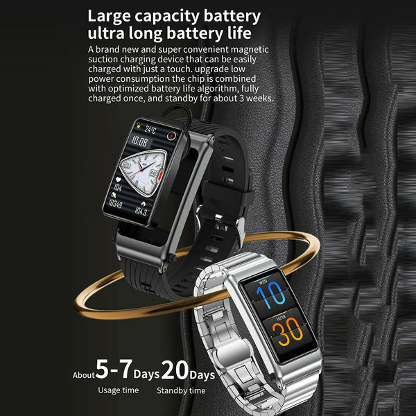 K80 1.57 inch Leather Band IP67 Earphone Detachable Smart Watch Support Bluetooth Call(Gold)