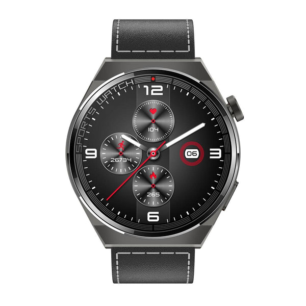 KT62 1.36 inch TFT Round Screen Smart Watch Supports Bluetooth Call/Blood Oxygen Monitoring, Strap:Leather Strap(Black)
