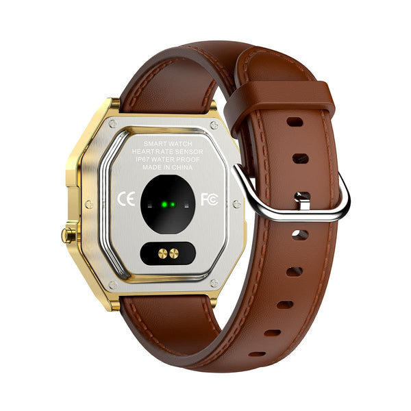 KW18 IP67 0.96 inch Leather Watchband Color Screen Smart Watch(Gold)