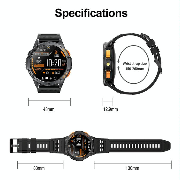 LEMFO K67 1.43 inch AMOLED Screen GPS Sports Smart Watch, Support Bluetooth Call / Health Monitoring(Silver Orange)