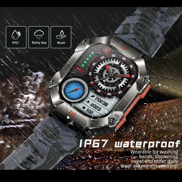 LEMFO KR80 2.0 inch BT5.1 IP67 Sport Smart Watch, Support Bluetooth Call / Sleep / Blood Oxygen / Heart Rate / Blood Pressure Health Monitor(Black+Camouflage)