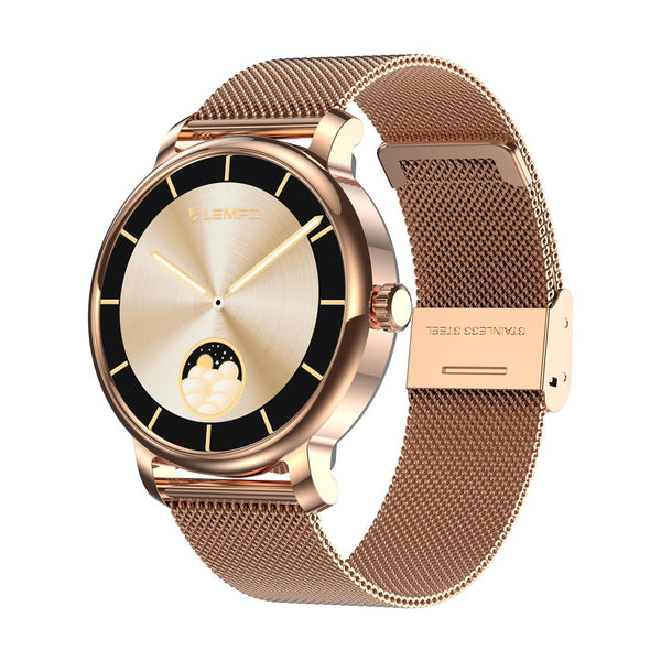 LEMFO LF35 1.43 inch AMOLED Round Screen Steel Strap Smart Watch Supports Blood Oxygen Detection(Gold)