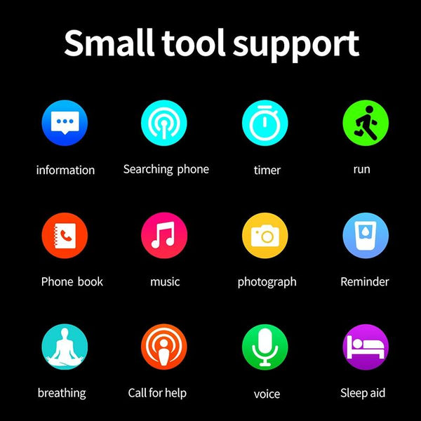 1. Support time synchronization, alarm, synchronous push weather, raise your hand to light up the screen, sleep, timer, find your phone, call/text message reminder, message push, heart rate monitoring, blood oxygen detection, remote music, dial, push dial, DIY dial, remote upgrade, data synchronization, Bluetooth call