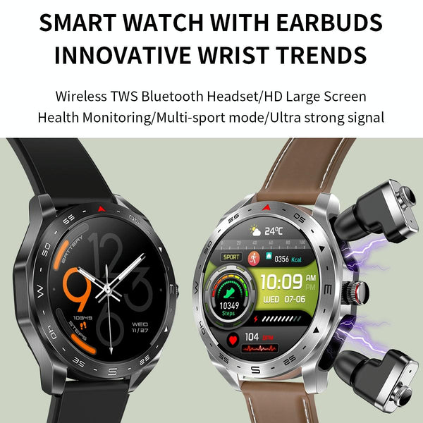 LEMFO T95 1.52 inch IPS Screen 2 in 1 Bluetooth Earphone Smart Watch Support Health Monitoring(Black)