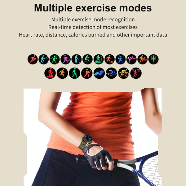 20. Functions: Multiple sports modes, customizable watch faces, voice calls, mini-games, weather, pedometer, distance, raise wrist to wake screen, sleep monitoring, call reminders, message reminders, sedentary reminders, alarm reminders, calendar, AI voice assistant, music playback, hourly measurement, heart rate, blood oxygen, calculator, APP sports tracking, remote photo taking, find wristband, time synchronization, stopwatch, contacts synchronization, flashlight