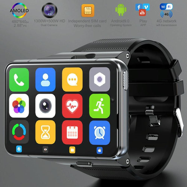 LOKMAT APPLLP Max 4G Call Smart Watch, 2.88 inch MTK6761 Quad Core, 4GB+64GB, Android9.0, GPS, Heart Rate (Black)
