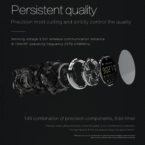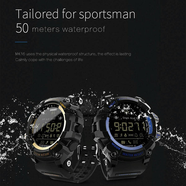 Lokmat MK16 LCD Screen 50m Waterproof Smart Watch, Support Information Reminder / Remote Camera / Walking Motion Monitor(Black)