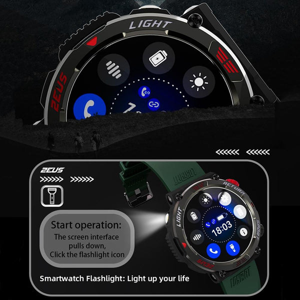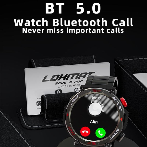 LOKMAT ZEUS 5 PRO 1.46 Inch 5ATM Waterproof Flashlight Bluetooth Call Smart Watch(Red)