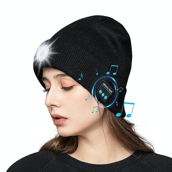 M1-BL LED Glowing Bluetooth Music Hat Wireless Call Night Running Hat(Black)