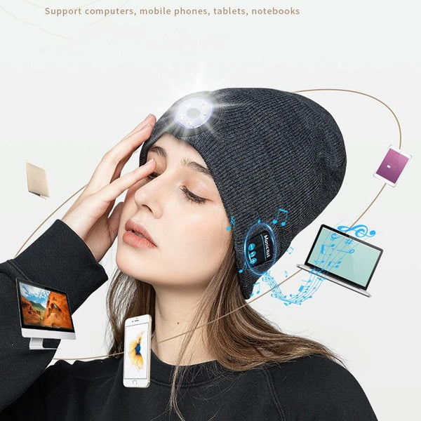 M1-BL LED Glowing Bluetooth Music Hat Wireless Call Night Running Hat(Gray)