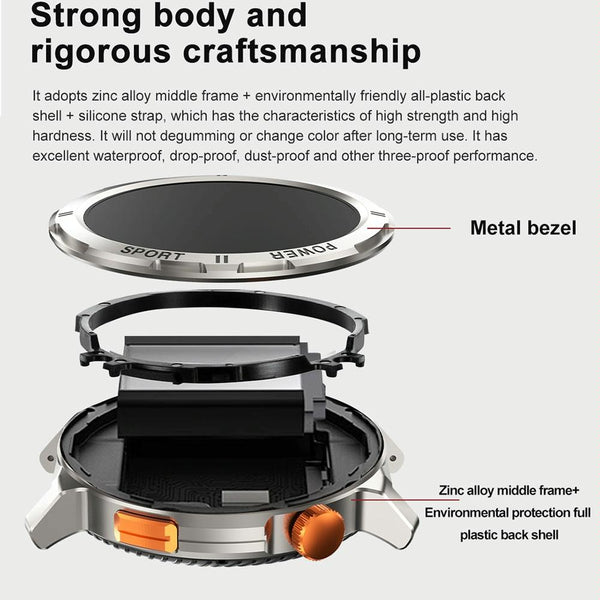 2. Shape and material: Zinc alloy middle frame + environmentally friendly all-plastic back shell + silicone strap