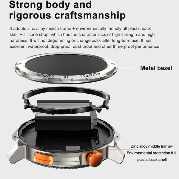 2. Shape and material: Zinc alloy middle frame + environmentally friendly all-plastic back shell + silicone strap