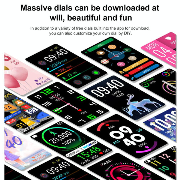6. Application functions: stopwatch, remote camera, menstrual period, password lock, bedside clock, screen dial, location, weather, social sharing, firmware upgrade