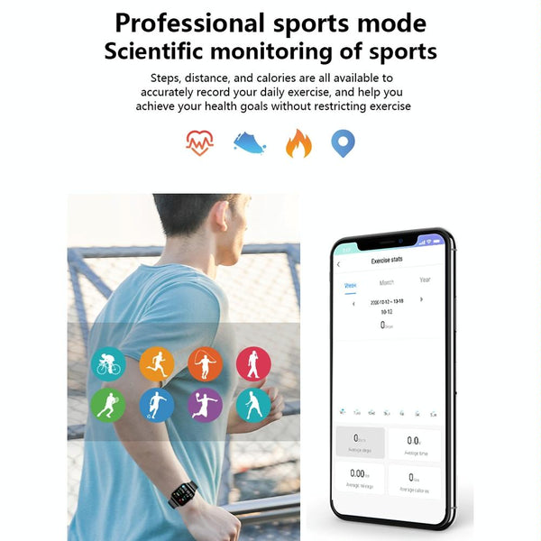 10. Functions: step counting, sleep monitoring, heart rate, blood pressure, blood oxygen, sedentary reminder, drinking reminder, exercise step count, exercise mileage record, calorie consumption, multiple exercise modes, exercise track, silent alarm, remote Camera, music control, etc.