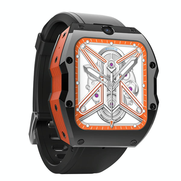 Model X 1.99 inch IP68 Waterproof Android 9.0 4G Dual Cameras Ceramics Smart Watch, Specification:2GB+16GB(Black Orange)