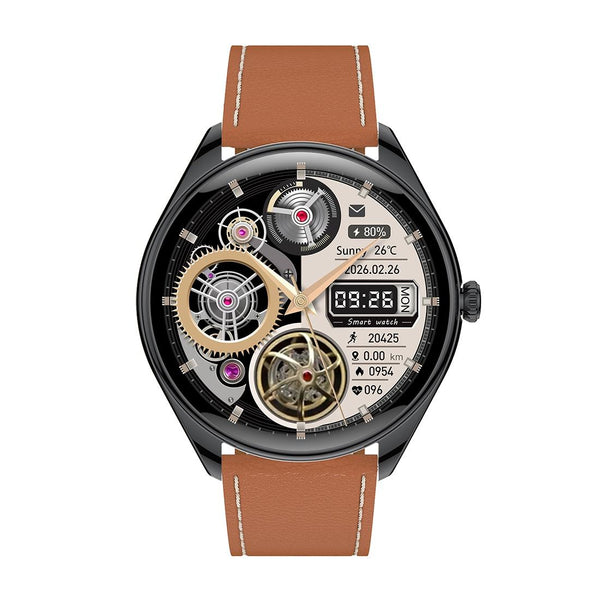 MT55 1.43 inch AMOLED HD Screen Ultra-thin Smart Call Health Watch, Leather Strap(Black Brown)