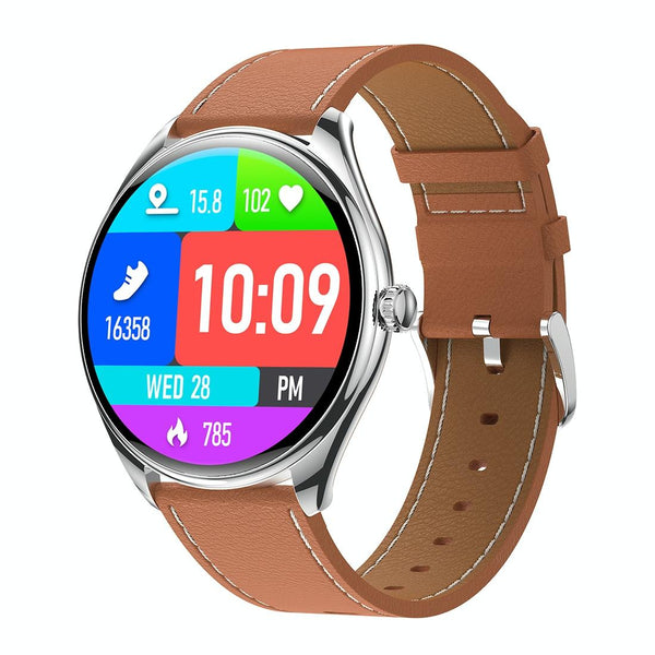 MT55 1.43 inch AMOLED HD Screen Ultra-thin Smart Call Health Watch, Leather Strap(Silver Brown)