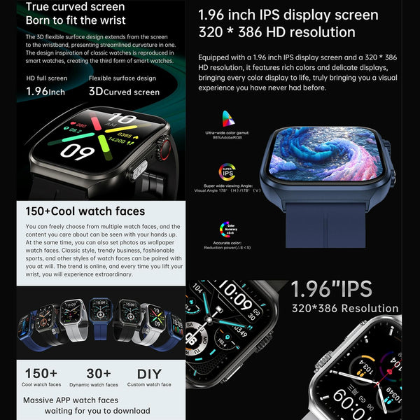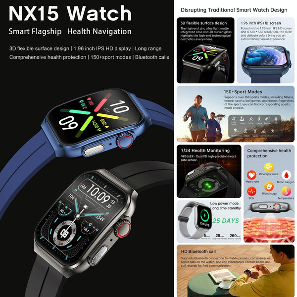 NX15 Smart Watch, 1.96 inch, BT Call / Heart Rate / Blood Pressure / Blood Oxygen(Blue)