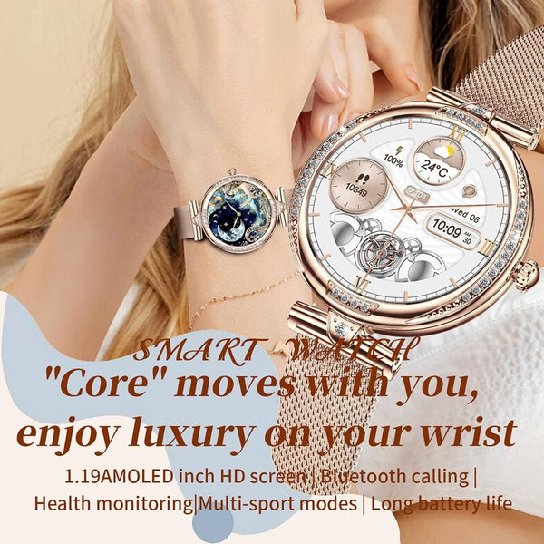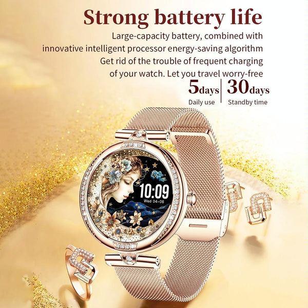 Supports Bluetooth calls, heart rate detection, blood oxygen detection, blood pressure detection, time display, step counting, calories, distance, multiple exercise modes, sleep monitoring (sleep time, sleep quality), menstrual management, pregnancy tracking, call notifications, message reminders, multi-language push, weather, stopwatch, alarm clock, shake to take pictures, find mobile phone, task reminder (sitting reminder), music control, synchronize data to APK/APP, dial management, etc.