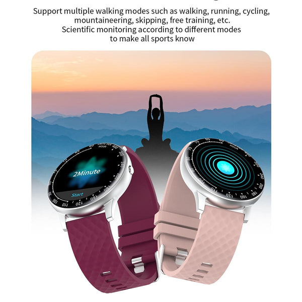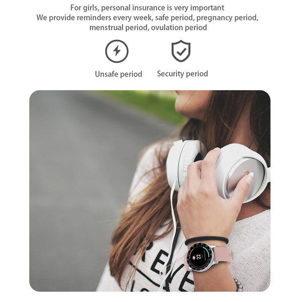 12. Supports functions such as custom dial, female physiological cycle, off-screen always on, weather forecast, pedometer, heart rate, sleep, sedentary, mileage, blood oxygen, blood pressure, search, calories, Bluetooth, message push, etc.
