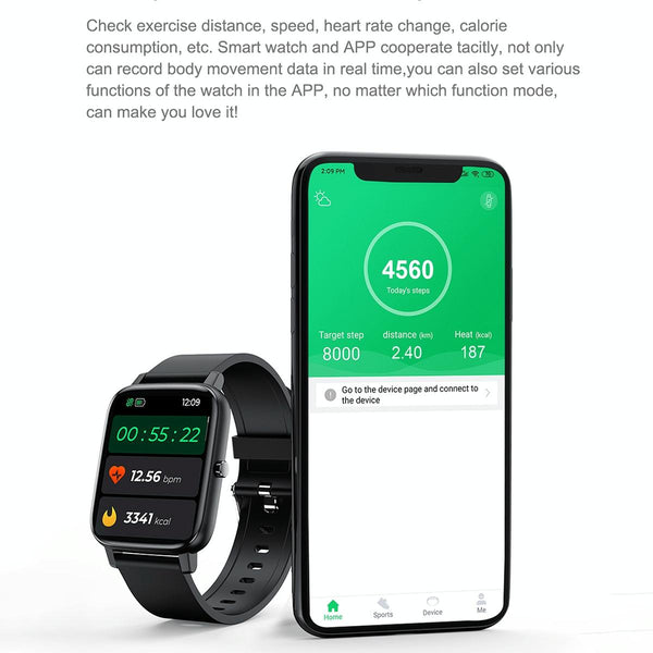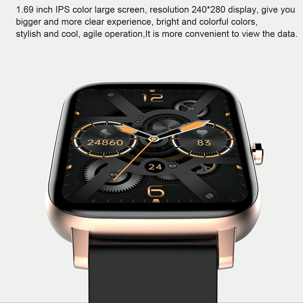 12. Support custom dial, weather forecast, step counting, heart rate, sleep, sedentary, mileage, blood oxygen, blood pressure, search, calories, Bluetooth, message push and other functions.