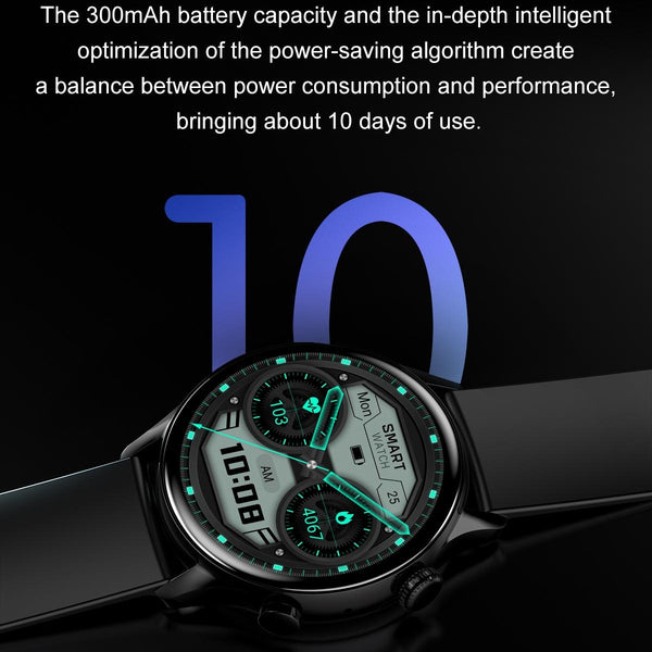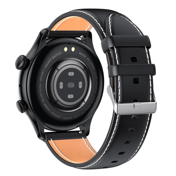 Ochstin 5HK8 Pro 1.36 inch Round Screen Blood Oxygen Blood Pressure Monitoring Bluetooth Smart Watch, Strap:Leather(Black)