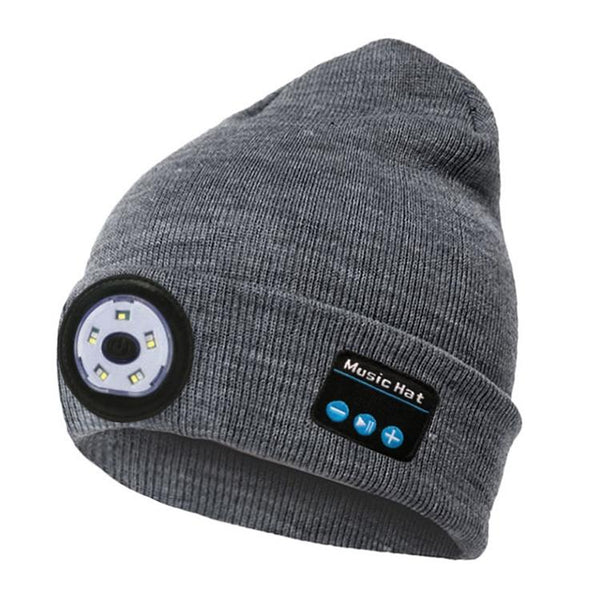 Outdoor Night Running Night Fishing LED Light Illumination Bluetooth 5.0 Knitted Hat (Grey)
