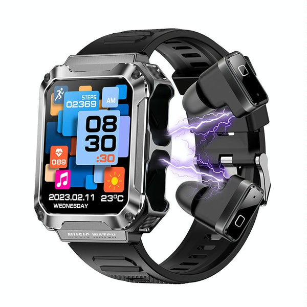 OVISEN T93 1.96 inch IPS Screen 2 in 1 Bluetooth Headset Smart Watch, Supports Blood Oxygen Monitoring/Bluetooth Music(Silver)