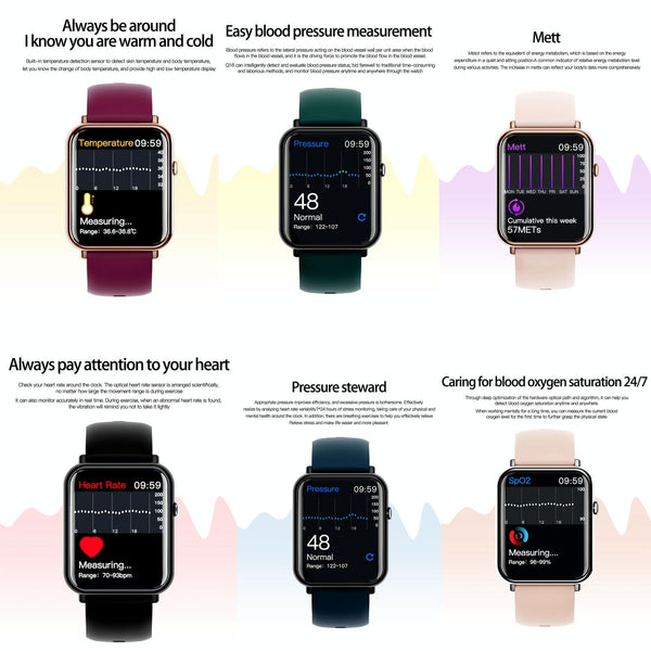 5. Support 24-hour automatic heart rate / blood pressure / blood oxygen / body temperature.