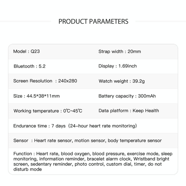 4. Support heart rate monitoring and sleep tracker: Using high-performance optical sensors, the fitness tracker provides 24-hour continuous real-time heart rate, blood oxygen (Sp02) and sleep monitoring (deep/light sleep) and other health monitoring functions. Accurately monitor heart rate in real time and better understand heart rate trends. In addition, it provides detailed analysis of sleep quality by continuously recording sleep patterns, which will help you adjust your lifestyle in time.
