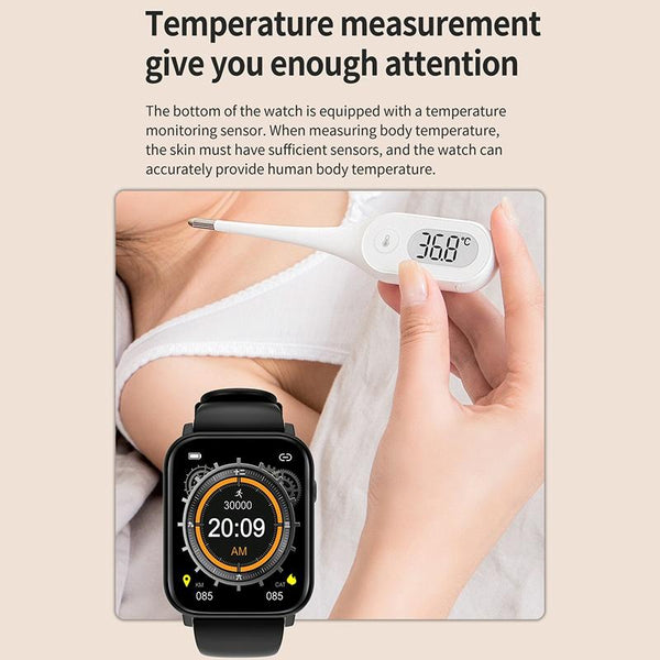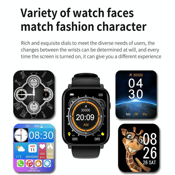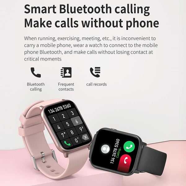 1. Functions: Support Bluetooth calls, call records, common contacts, dialing, voice assistant, heart rate detection, blood pressure monitoring, blood oxygen detection, sleep detection, body temperature, Bluetooth music playback, weather, women, breathing training, games, passwords, Receipt code, business card, time setting, calculator, information notification, stopwatch, timer, alarm clock, mobile phone search, activity record
