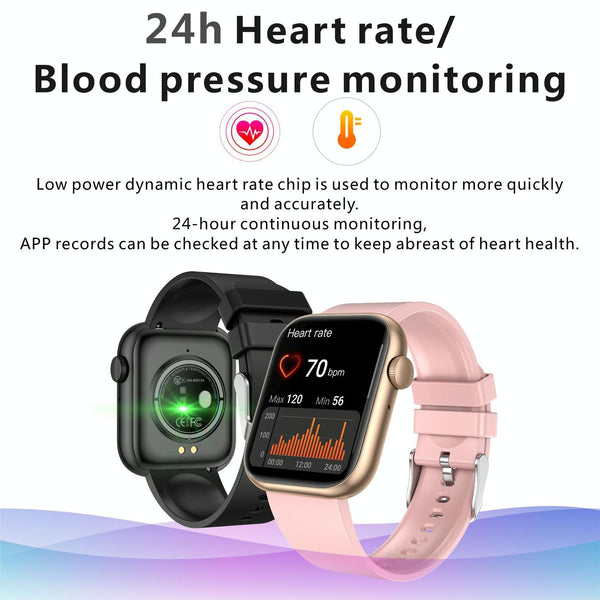 14. Functions: Bluetooth phone call, heart rate/blood pressure/blood oxygen monitoring, sleep monitoring, body temperature measurement, breathing training, 100+ sports models, raise to wake, message reminder, weather forecast, flashlight, clock display, alarm clock, SOS, small games, calculator, female physiological cycle, music remote, customized dial, long sitting reminder, no disturbance mode, looking up bracelet, remote camera, step counting, distance, calories