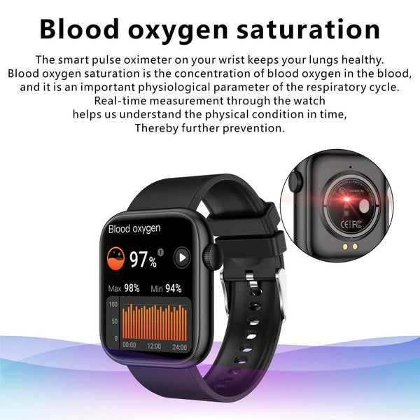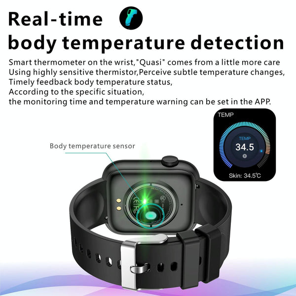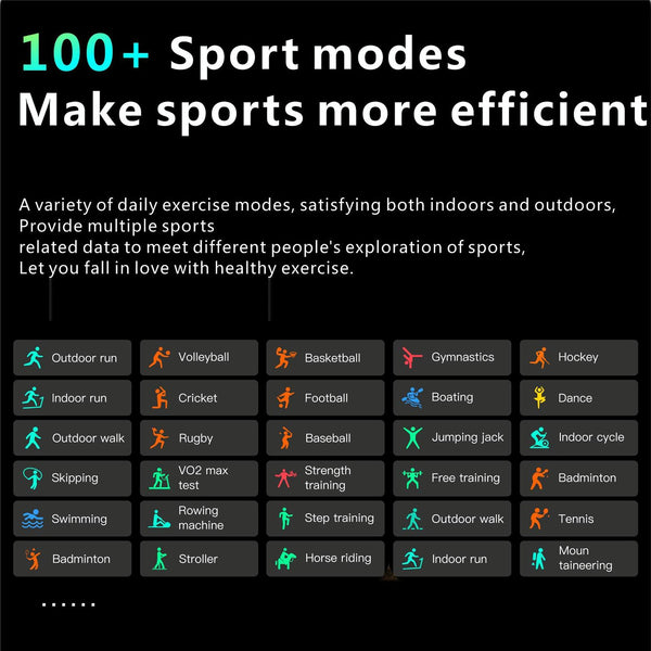 14. Functions: Bluetooth phone call, heart rate/blood pressure/blood oxygen monitoring, sleep monitoring, body temperature measurement, breathing training, 100+ sports models, raise to wake, message reminder, weather forecast, flashlight, clock display, alarm clock, SOS, small games, calculator, female physiological cycle, music remote, customized dial, long sitting reminder, no disturbance mode, looking up bracelet, remote camera, step counting, distance, calories