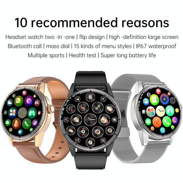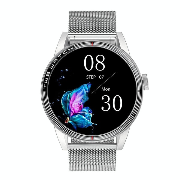R6 1.32 inch Round Screen 2 in 1 Bluetooth Earphone Smart Watch, Support Bluetooth Call / Health Monitoring(Silver Steel Strap)