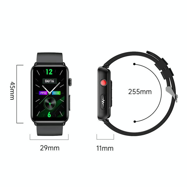 Smart Watch Ring ECG Temperature Heart Rate Blood Pressure Health Bluetooth Talking Watch, Color: Black Leather
