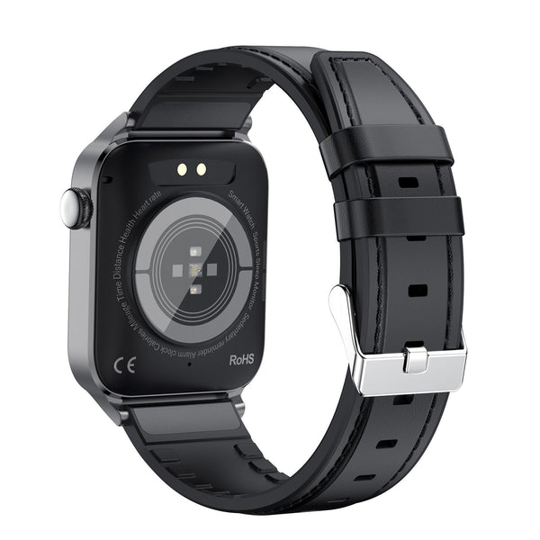 T50 1.85 inch Leather Band IP67 Waterproof Smart Watch Supports Voice Assistant / Health Monitoring(Black)