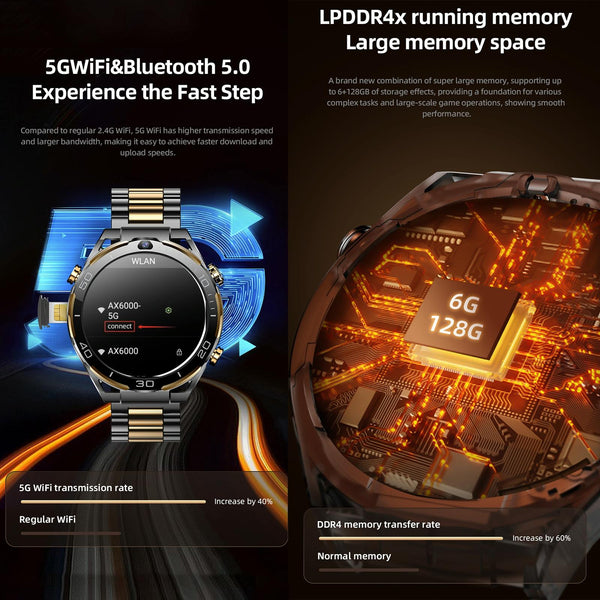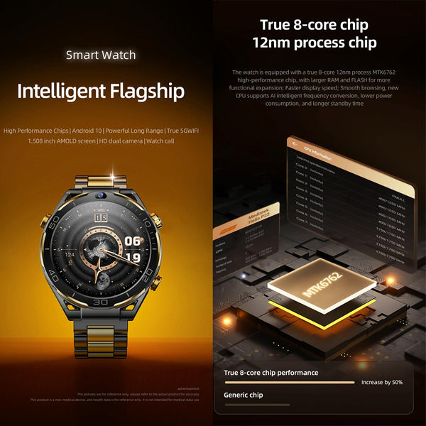 T7 1.508 inch 4G LTE Android 10 Smart Watch, 6GB+128GB, MTK6762 Octa Core, Support Heart Rate / Blood Oxygen(Gold)