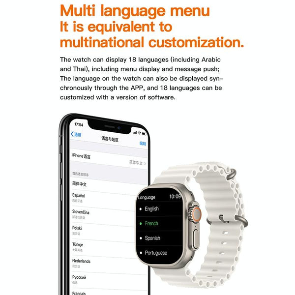 T800 Ultra 1.99 inch Ocean Silicone Band Smart Watch Support Heart Rate / ECG (Black)