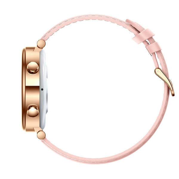 T86 Woman Health 1.27 inch Smart Watch, BT Call / Physiological Cycle / Heart Rate / Blood Pressure / Blood Glucose / SOS(Rose Gold Pink Leather)