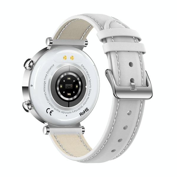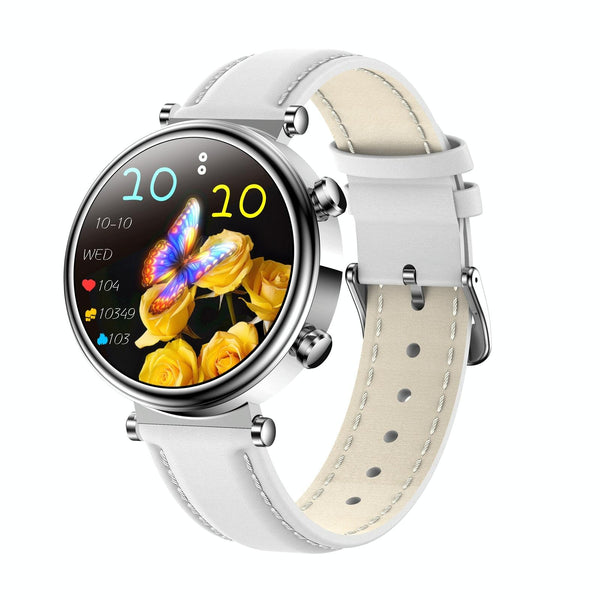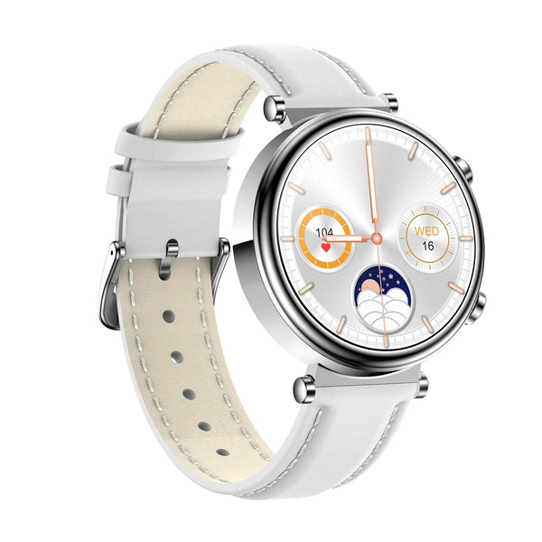 T86 Woman Health 1.27 inch Smart Watch, BT Call / Physiological Cycle / Heart Rate / Blood Pressure / Blood Glucose / SOS(Silver White Leather)
