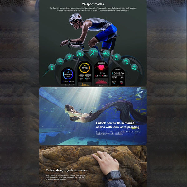 TANK M1 1.72 TFT Screen Smart Watch, Support Sleep Monitoring / Heart Rate Monitoring(Black)