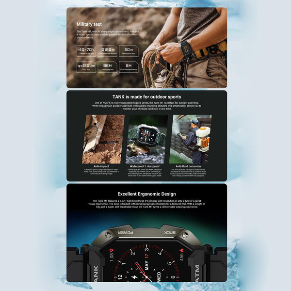 TANK M1 1.72 TFT Screen Smart Watch, Support Sleep Monitoring / Heart Rate Monitoring(Camouflage Green)