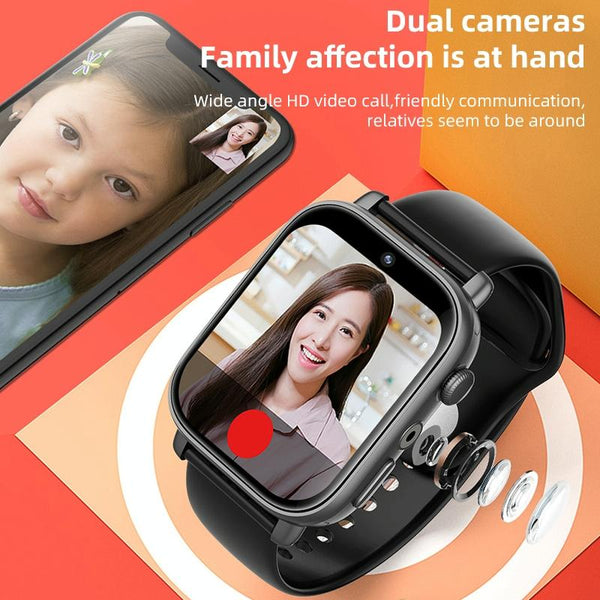 UNIWA X1S 1.9 inch IP67 Waterproof 4G Android 8.1 Dual Cameras Smart Watch Support Temperature Measurement, Specification:1G+8G(Black)