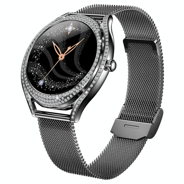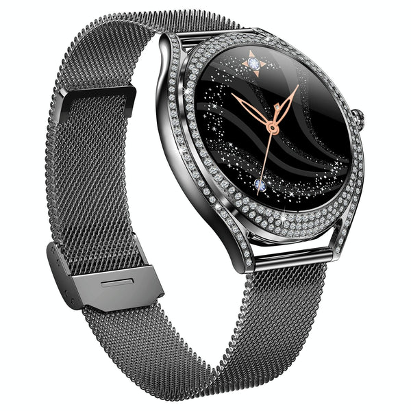 V66 1.28inch BT5.0 Smart Watch Support Heart Rate/ Sleep Detection, Style:Steel Strap(Black)