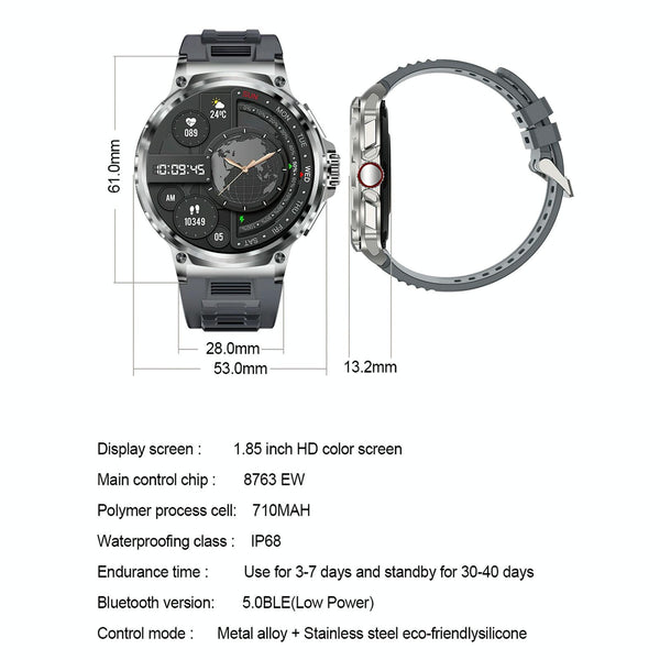 V69 IP68 BT5.0 1.85inch Smart Watch Support Voice Call / Sleep Detection(Silver)