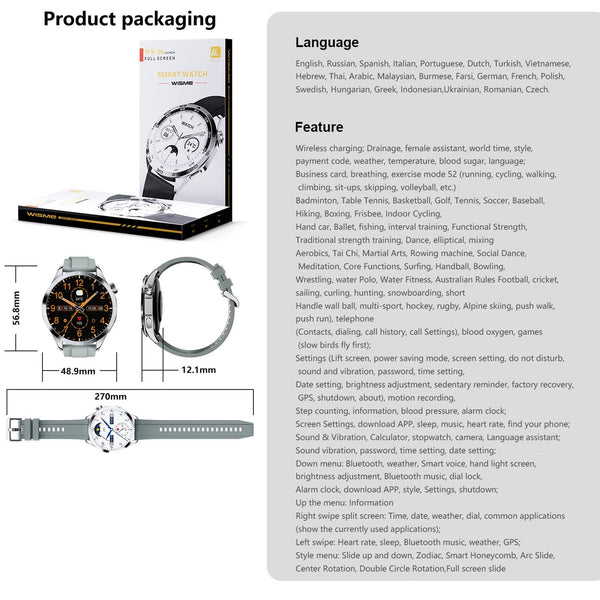 14. APP/Watch language: English (default), Russian, Spanish, Italian, Portuguese, Dutch, Turkish, Vietnamese, Hebrew, Thai, Arabic, Malaysian, Burmese, Persian, German, French, Polish, Swedish, Hungarian, Greek, Indonesian, Ukrainian, Romanian, Czech.