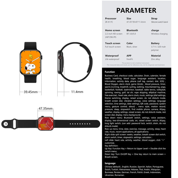 18. APP Language + Watch Language: Chinese, English, Russian, Spanish, Italian, Portuguese, Dutch, Turkish, Vietnamese, Hebrew, Thai, Arabic, Malay, Burmese, Persian, German, French, Polish, Greek, Indonesian, Ukrainian, Romanian