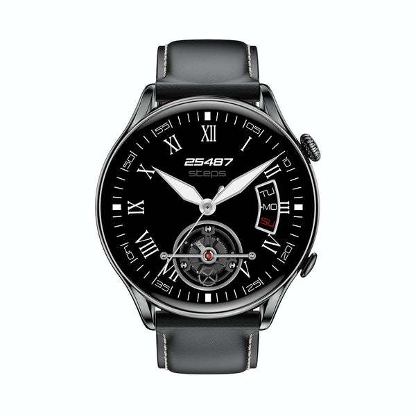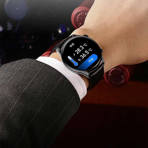 X5 1.32 Inch Round Screen Leather Strap Smart Health Watch Supports Body Temperature Monitoring, ECG Monitoring, Blood Pressure(Black)